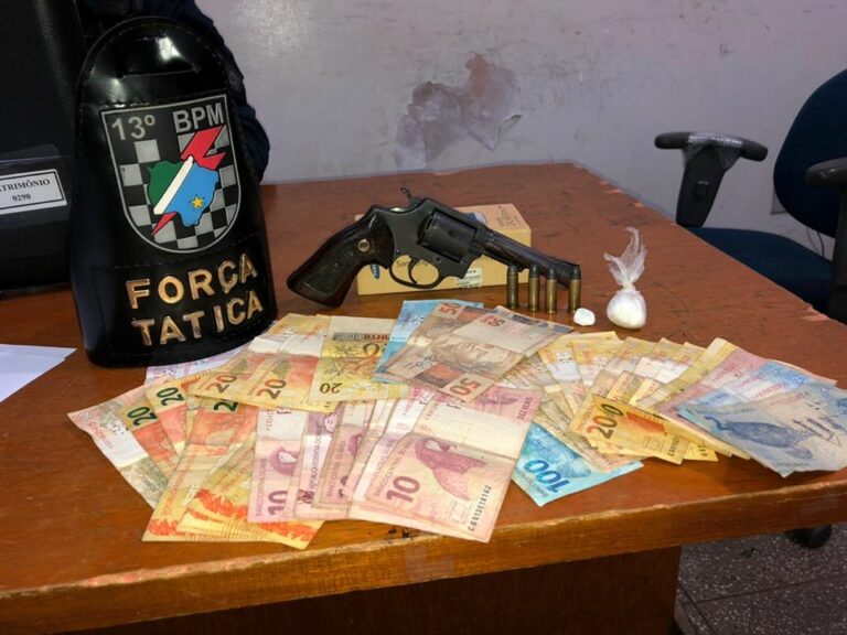 Um homem de 28 anos foi preso no domingo (12) por volta das 17h30, com papelotes de maconha, cocaína e uma arma de fogo, a prisão aconteceu após uma denúncia anônima para a Polícia Militar. O boletim de ocorrências afirma que uma ligação para o telefone de emergência da PM, denunciou que um homem estaria […]