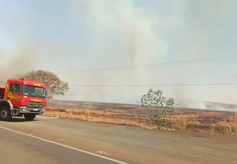 A BR-158, que liga Paranaíba a Cassilândia, foi completamente interditada devido à densa fumaça das queimadas