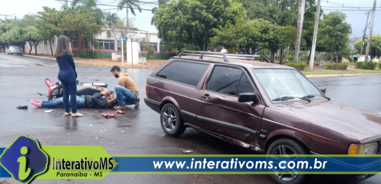 Um acidente de trânsito envolvendo uma Volkswagen Parati e uma moto, na esquina do Fórum de Paranaíba, causou ferimentos em uma moça que pilotava uma Honda Biz pela avenida Juca Pinhé.