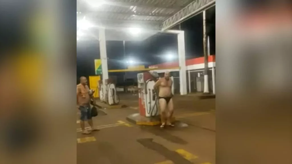 As imagens de um caminhoneiro apenas de roupa íntima e chinelos tomando banho na torneira de um posto de abastecimento em Mato Grosso do Sul viralizaram nas redes sociais.